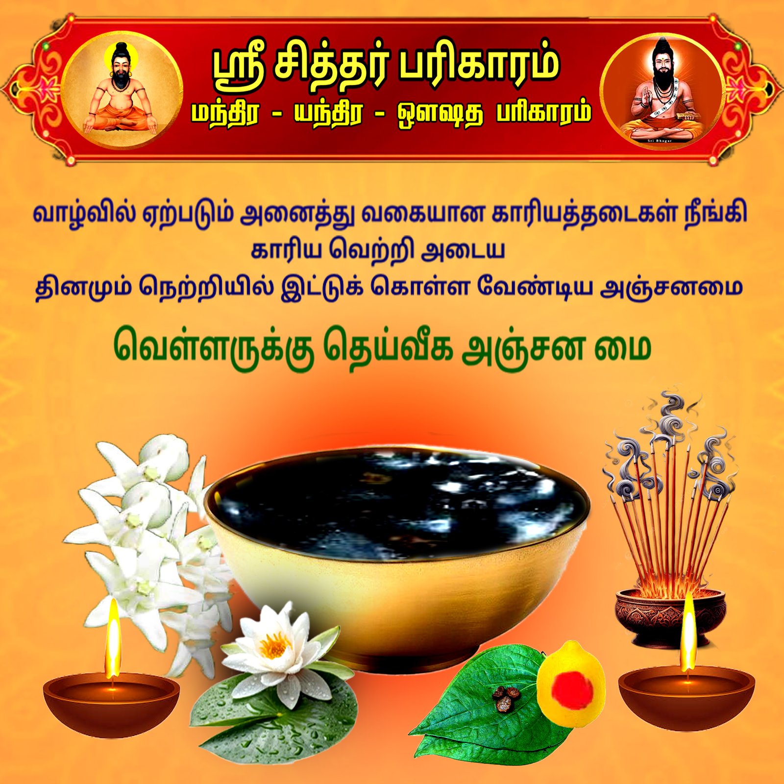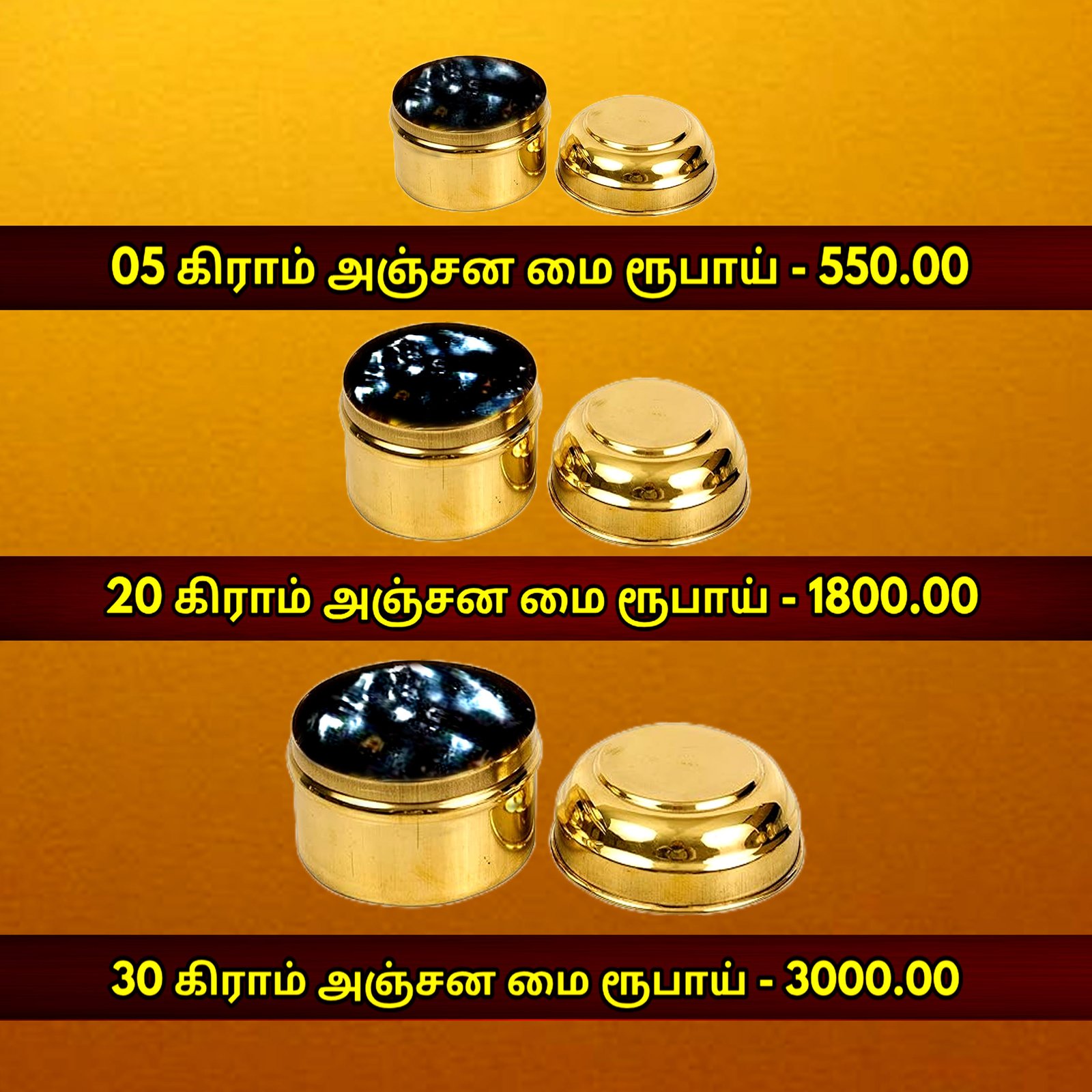போன்ற தெய்வீக மூலிகைகள் மற்றும் வசிய பொருட்களால் அஞ்சன மையாக தயாரித்து மந்திர உரு சக்தி ஏற்றப்பட்டது பயன்படுத்தி பலனை அடையுங்கள்
